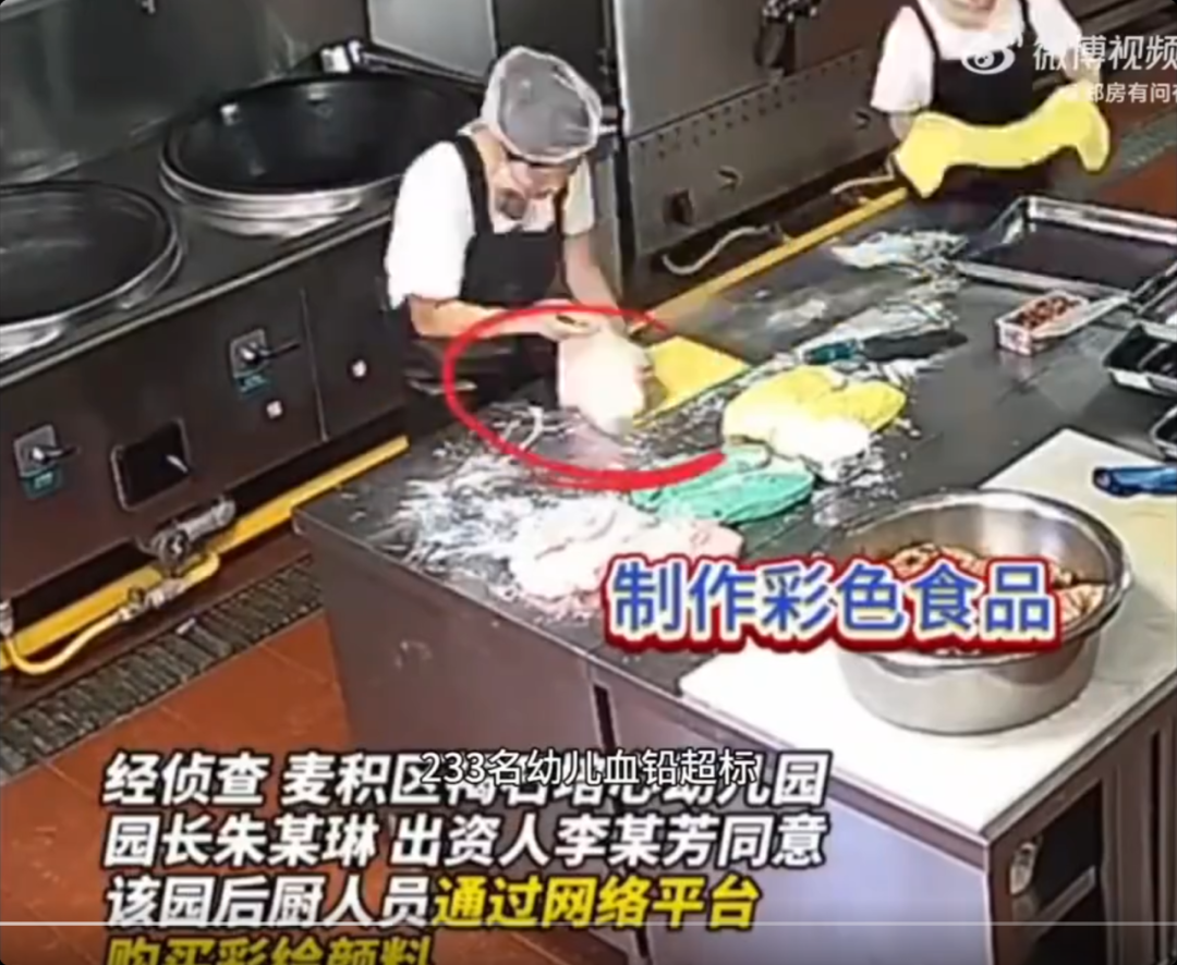 经调查,该幼儿园为使食品色泽鲜艳,竟违规用含铅彩绘颜料制作三色红枣发糕、玉米卷肠包等食物,致使 233 名儿童血铅异常。