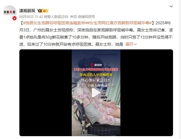 花椒泡脚差点晕倒?女子亲身经历提醒:别盲目跟风网红养生!