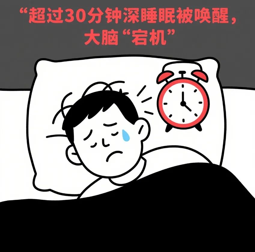 但一旦进入深睡眠(超过 30 分钟),突然被唤醒会导致大脑 “宕机”,出现头晕脑胀、反应迟钝的 “睡眠惯性”,晚上还容易失眠,形成恶性循环。