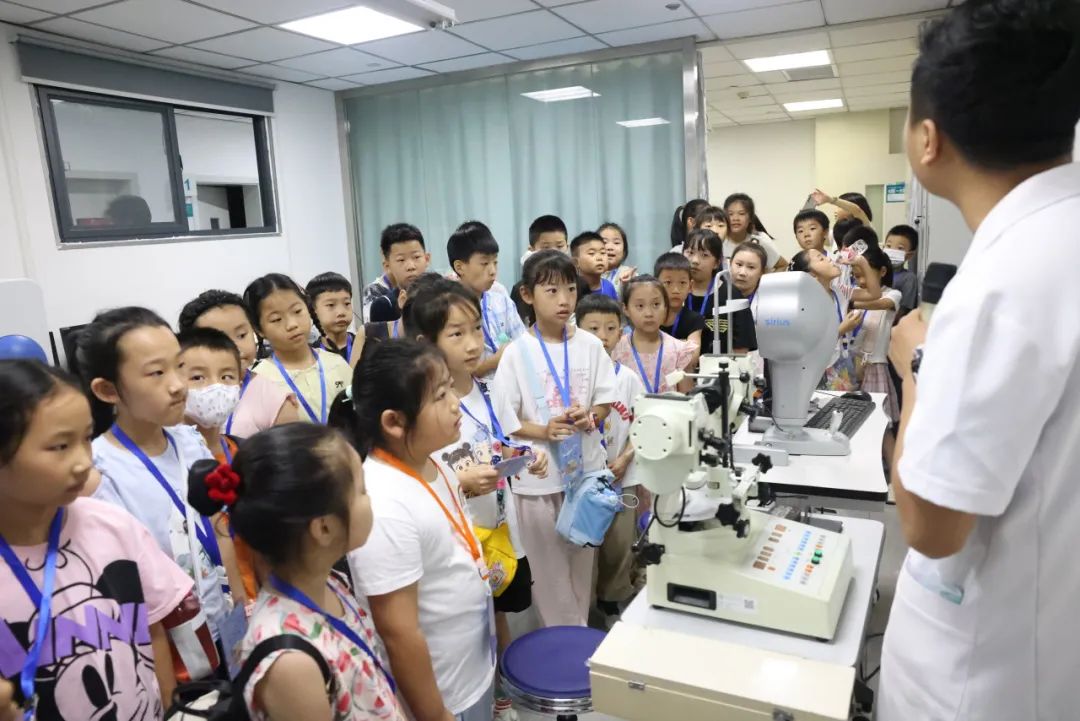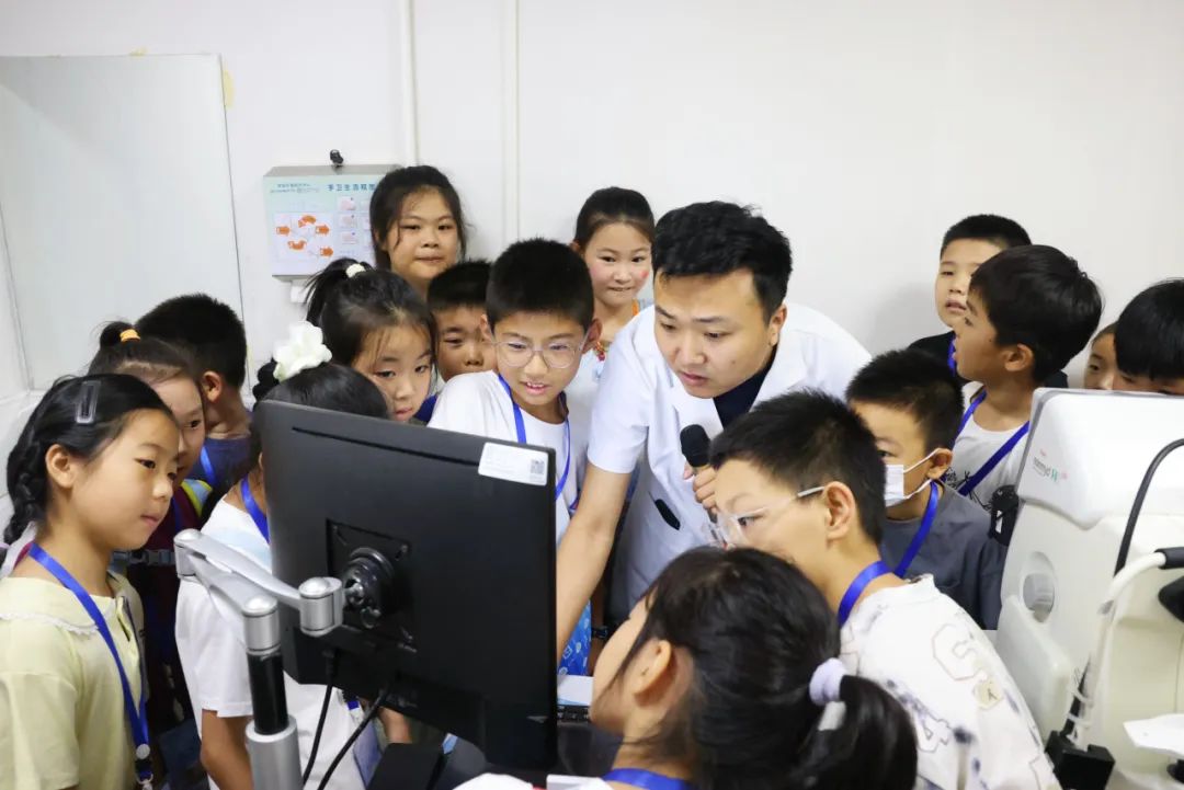 孩子们围在专业仪器旁,好奇地观察医护人员操作,一步步揭开眼科医学的神秘面纱。