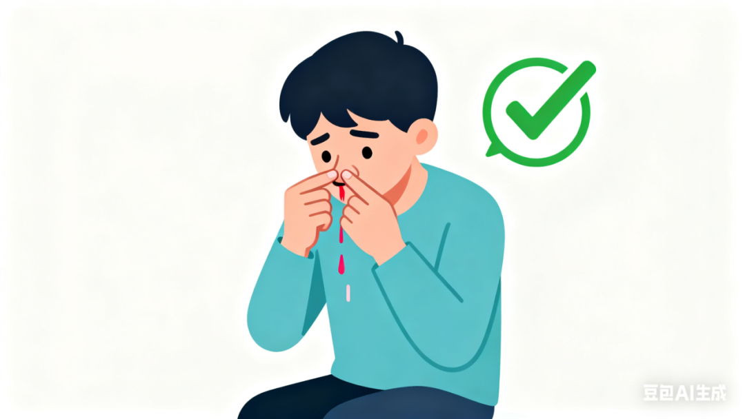 巧止血:用干净纸巾轻挡外溢的血(别塞进鼻腔),用拇指和食指紧捏两侧鼻翼,力度以不疼但能压迫止血为准,保持 10~15 分钟,期间用嘴呼吸;