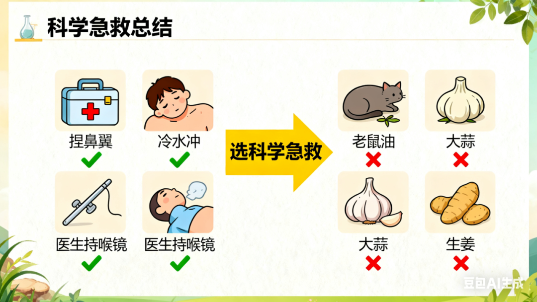 果断去医院: 只要看不到鱼刺、感觉刺痛明显,或出现吞咽困难、胸痛,马上到医院,医生用喉镜、内镜就能安全取出,别硬扛。