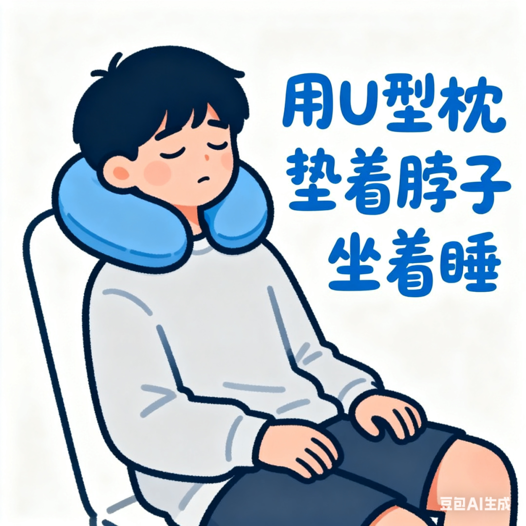 有条件的话,用 U 型枕垫着脖子坐着睡,或者备张折叠床躺着睡,舒服又护颈。