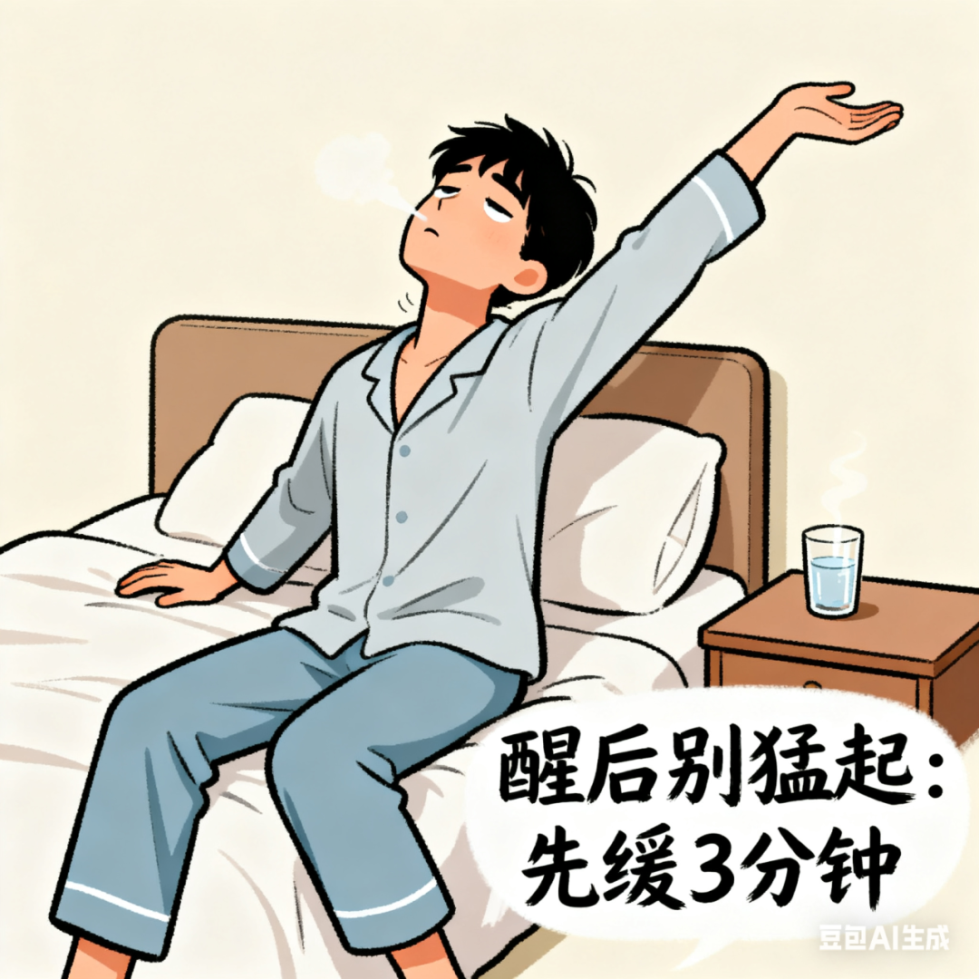 醒来后别急着起身,先伸个懒腰、活动活动脖子,喝口水醒醒神,再慢慢开始工作,避免突然起身头晕。