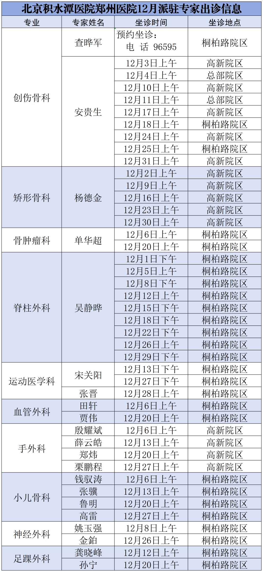 12月!北京积水潭医院郑州医院 专家坐诊信息!