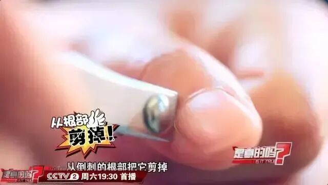 用消毒的剪刀,将已经软化的倒刺从根部把它剪掉。