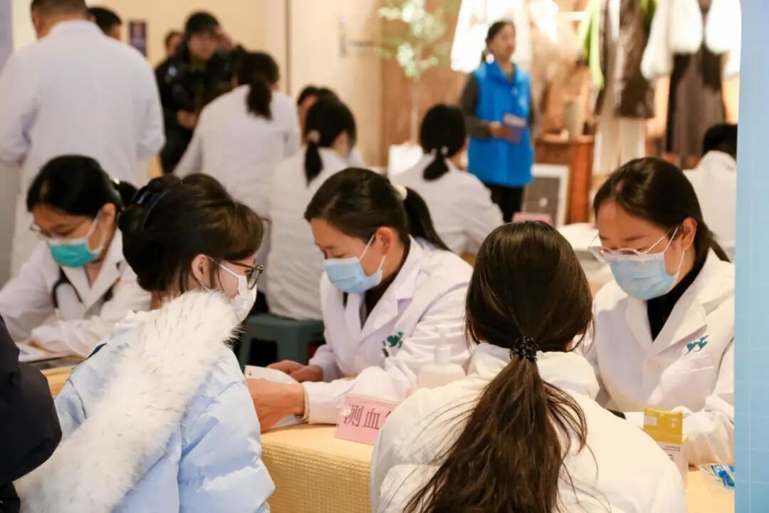 免费健康筛查区前始终排着有序的队伍,测血糖、量血压、查血氧,一会儿就能快速获取基础健康数据,帮大家及时掌握自身身体状况。