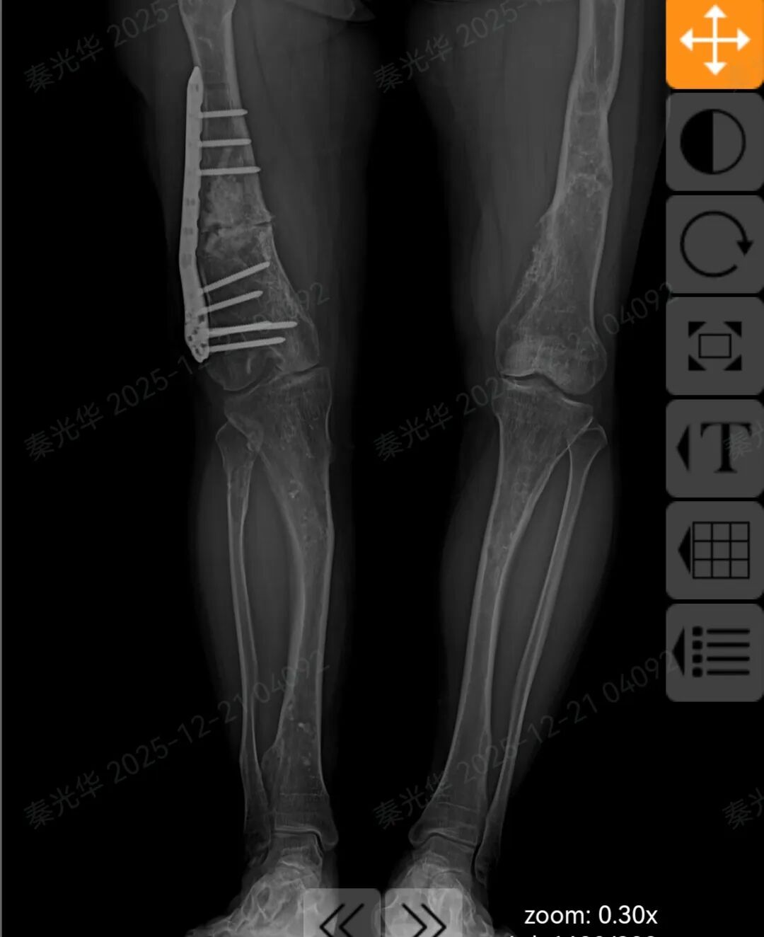 术后患者右侧股骨形态恢复正常,双下肢成功等长!