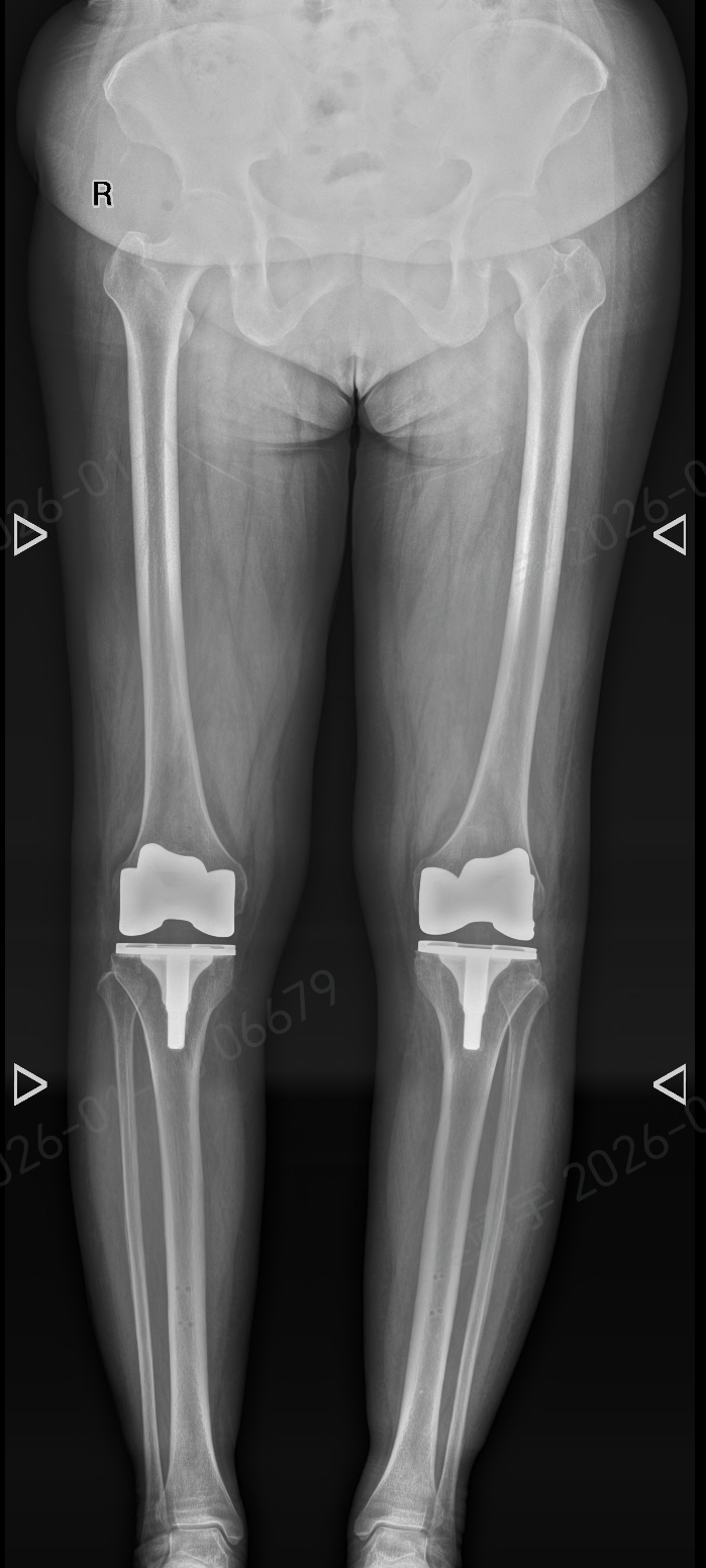 患者张阿姨(化名)的膝关节受骨关节炎影响已达10年,期间出现软骨严重磨损、骨质增生、关节畸形等问题,日常行走功能严重受限,每一步都伴随明显疼痛,尝试药物、理疗等多种方式后,改善效果不佳。