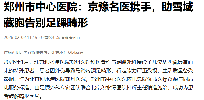 跨越藏郑京!国内顶尖医疗服务落地郑州,助雪域藏胞告别足踝畸形