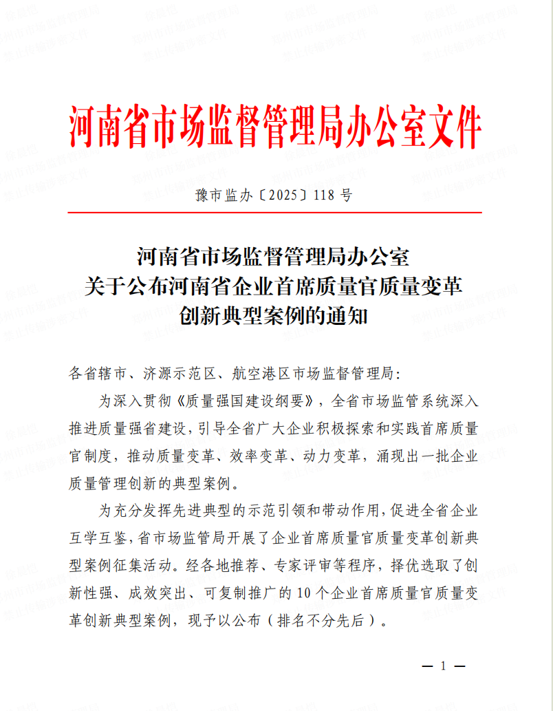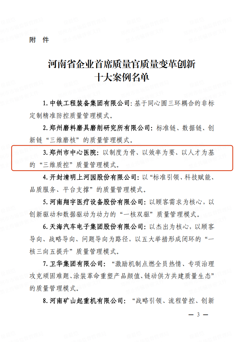 《“三维质控”质量管理模式》获评“郑州市企业首席质量官典型案例”并入选河南省企业首席质量官质量变革创新十大案例