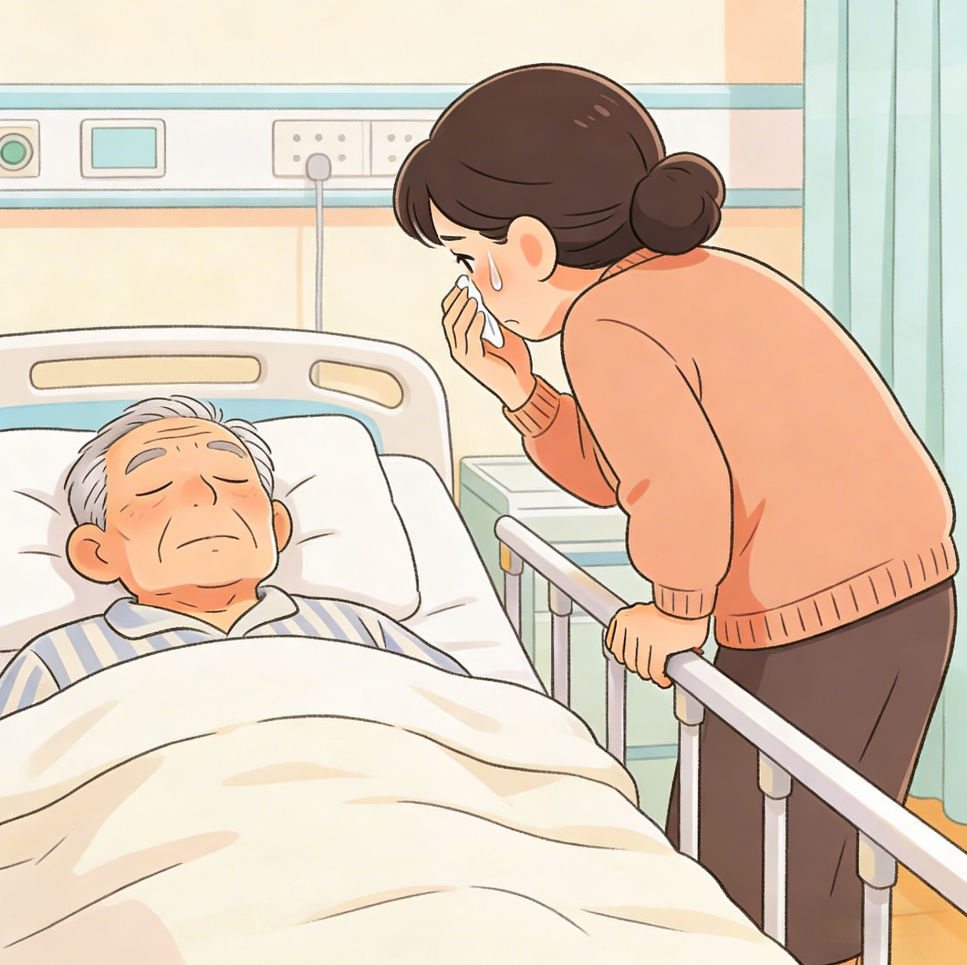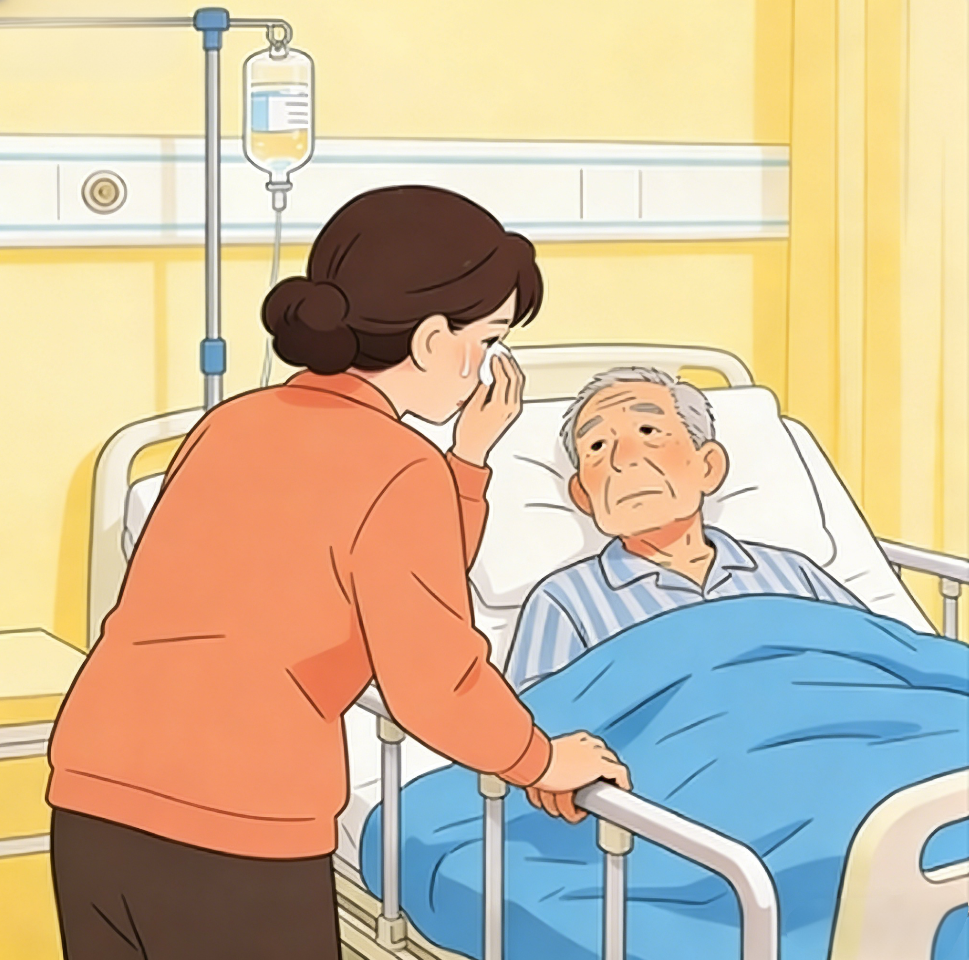 当王阿姨冲进病房,伯伯的眼睛忽然亮了一下,喉咙里发出 “呜… 呜” 的声响,右手慢慢抬起,虽只抬到胸口,却精准地朝她的方向伸去。