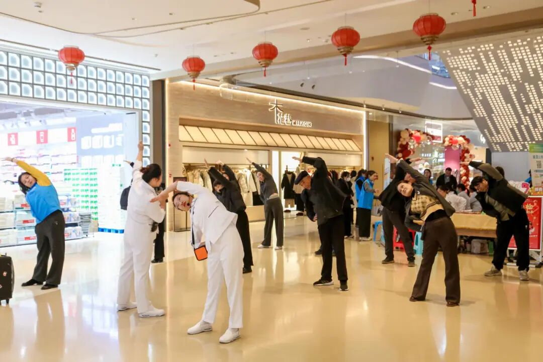 简单易学的动作既能活动筋骨,又能掌握日常护养技巧,大人小孩积极参与,成为商场里一道活力满满的风景线~