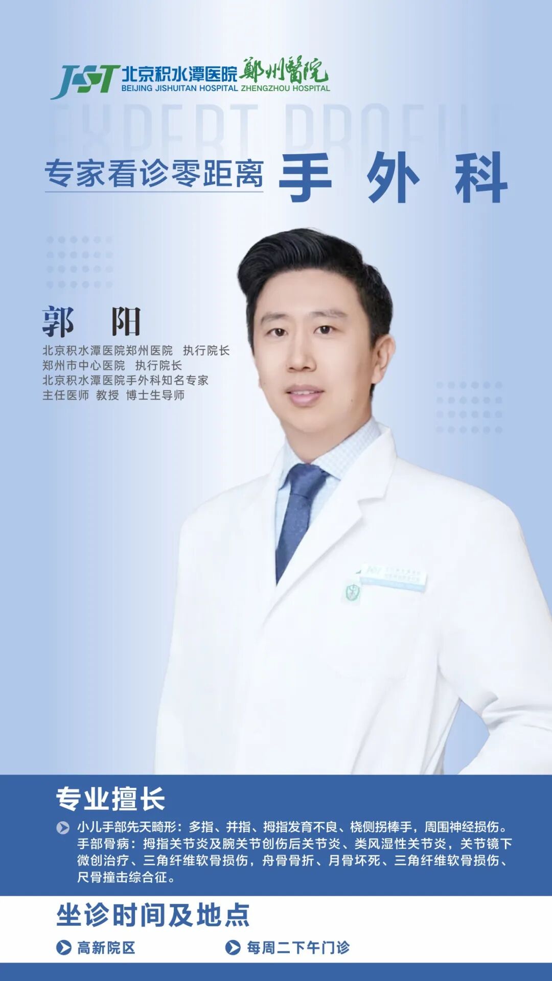 “难道非要跑千里之外,才能治好我的手?” 就在陈先生一筹莫展时,他听说了一个消息:北京积水潭医院手外科知名专家、主任医师郭阳,作为北京积水潭医院郑州医院执行院长,已经常驻郑州坐诊、手术—— 这正是国家区域医疗中心建设,把北京顶尖医疗资源 “搬” 到河南百姓家门口的实实在在的福利。